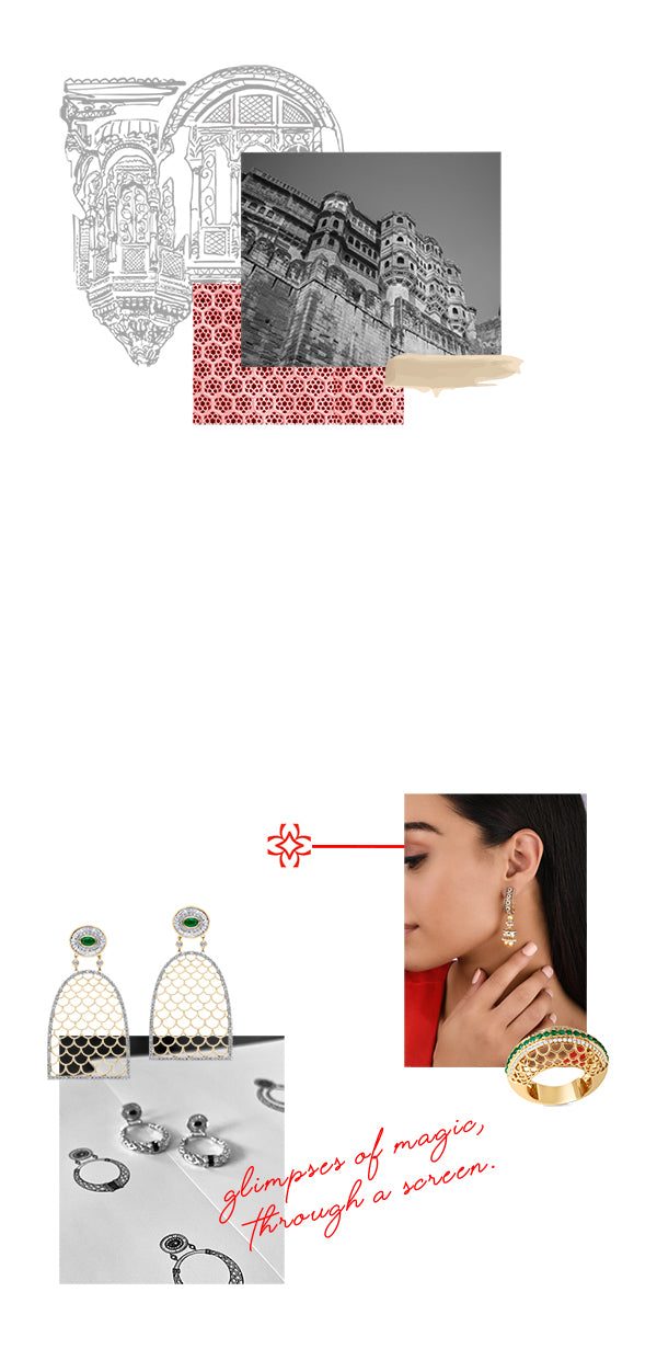At the Mehrangarh Fort in Jodhpur, the geometric and architectural marvel that is a joall, reveals Itself in its full splendor. Its symmetry, its detailing, the sense of grandeur at the fort these are the Inspirations behind the Jodhpur Collection.